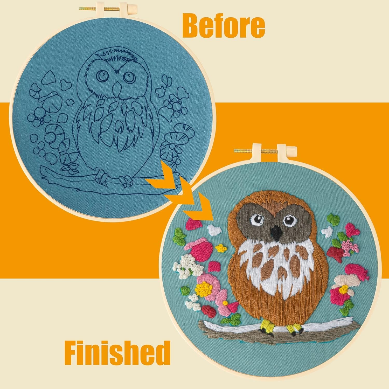 - PERFECT FOR BEGINNERS & CREATIVE GIFTS–Beginner-Friendly Owl Embroidery Kit with Pre-Printed Patterns: Ideal for adults and kids new to needlework, this mini embroidery kit features pre-printed owl patterns with step-by-step guides, perfect for nurturing creativity and focus. A thoughtful gift for crafters of all ages to experience the joy of hands-on achievement.